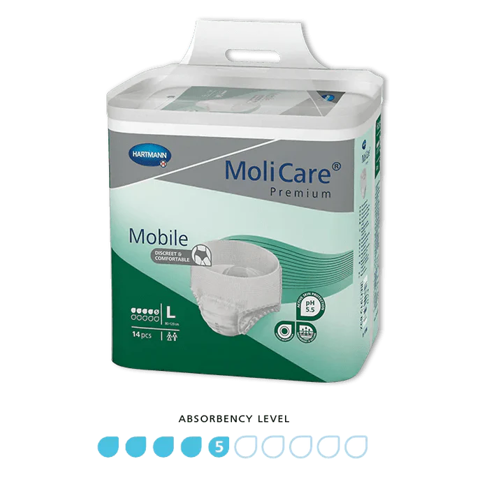 The MoliCare Premium Mobile 5D offers dependable support for individuals managing moderate urinary incontinence. Styled like regular underwear, this pull-up pant prioritises comfort, dignity, and ease—ideal for those who prefer a natural fit and active lifestyle.